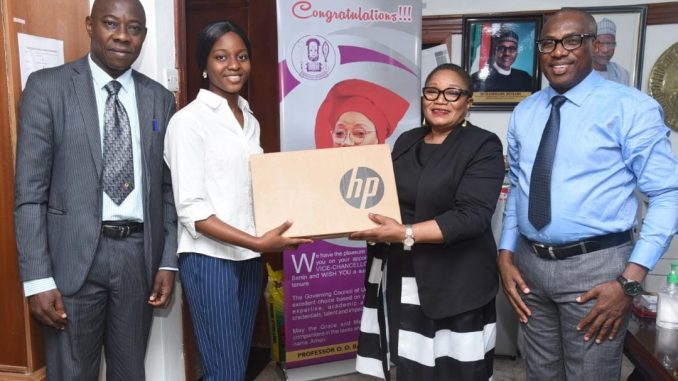 Presenting the laptop gift to the student, Professor Salami said the gift is expected to boost her morale and and spur her to be more dedicated to any given assignment.